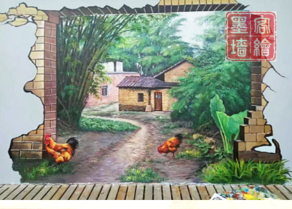 溫州市墨客墻繪藝術有限公司主要從事有個性有創(chuàng)意的家居裝飾墻繪、幼兒園卡通彩繪、KTV酒吧主題墻繪、3D立體墻繪、習哥彭姐文化大革命的城鄉(xiāng)文化宣傳墻繪等,當然還有我們獨歩武林的高墻墻繪藝術!畫高墻有時一個頭像就有兩米,不僅僅是大了型不好把握,一般習慣在陸地作戰(zhàn)的繪畫者往往上去后會讓你唱起一首歌:“三月里的小雨,淅瀝瀝瀝......瀝瀝……淅瀝瀝瀝下個不?!本褪谴魃夏虿粷瘢麄円矔谏厦嫜菔九两鹕?。我們施工時下面觀看的人如少女初戀般心跳,欣賞的人似紂王品酒觀妲己跳舞一樣陶醉。連村中惡犬也為我們搖尾吶喊:“……墨客墻繪……神勇無畏!